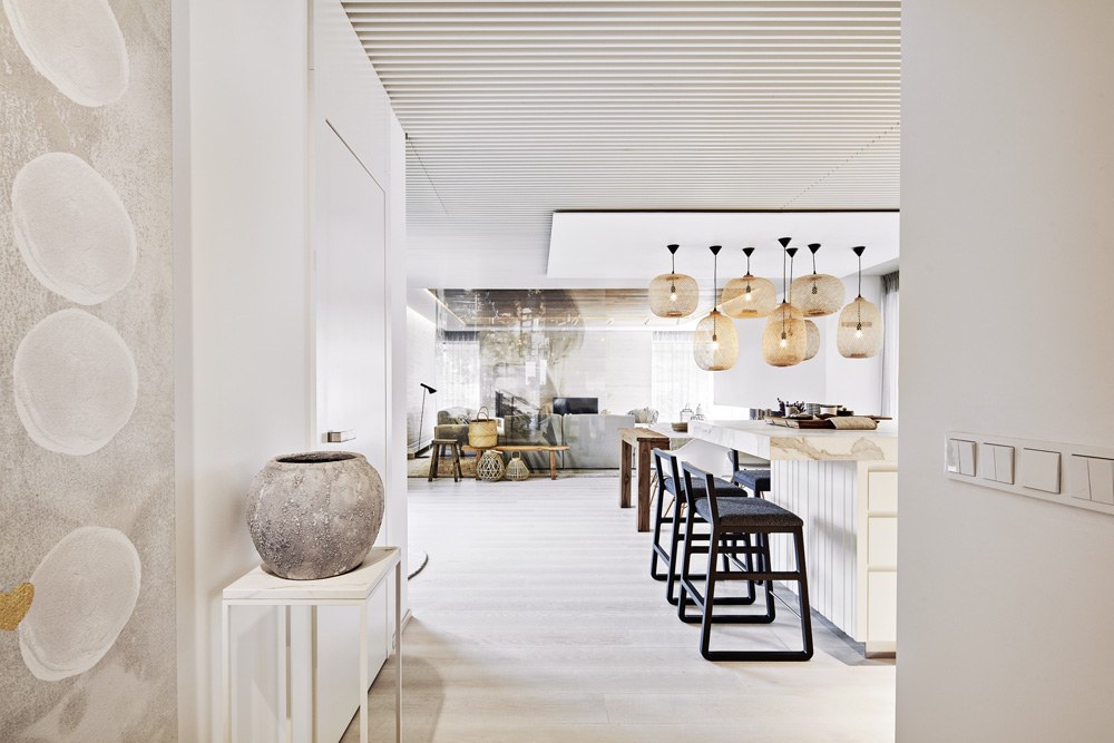 „Architektura zevnitř, architektura plná emocí a nálad... to je poznávací znamení našeho ateliéru. Emoce je to, co práci mého ateliéru odlišuje od jiných ateliérů. Vůbec nepovažuji nálady, emoce nebo atmosféru okamžiku za něco, co by architekturu a její význam oslabovalo. Dává jí to sílu a hloubku. Proto v naší práci takové emoce s klientem cíleně vytváříme. Ideální dům je hlavně o interiéru, interiér je o bydlení a bydlení, to je domov. To je ta emoce, kterou hledáme. Být někde, s někým, šťastni...“ popisuje Michal Kunc a pokračuje: „Chceme aby naše interiéry byly nejen praktické, ale i krásné a jedinečné. Proto navrhujeme i své vlastní ‚umění‘, tentokrát to byla deska skla s fotografií dělící prostor obývacího pokoje. A spousta drobných detailů a dekorací v podobě lamp, svícnů, vybavení kuchyně, stolování s příbory a talíři byla vybrána přesně pro tento interiér, pro tohoto klien ta. Bylo to vlastně na klíč.“