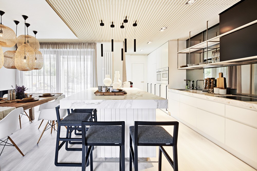 Čerstvě dokončený dům developerské společnosti IMOBA o celkové výměře 342 m2 nabídl rodině s dvěma dětmi bydlení dotažené do posledního detailu. Je výsledkem zdařilé týmové práce architektů Michala Kunce, Petra Tesaře a Jany Šandallové.