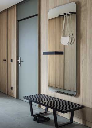 Cílem architektů bylo vytvořit jednoduchý moderní interiér s čistými formami. Z toho vychází i množství velkých vestavných prvků, které prostor hmotově sjednocují a dodávají mu charakter. Vzdušnost bytu umožnila zvolit objemnější typové produkty, které proporcemi odpovídají prostoru a neztrácejí se v něm.
