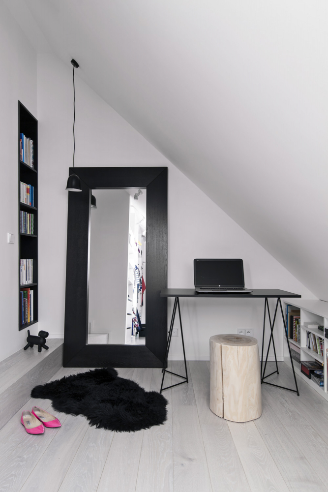 Pro spokojený život mladé slečny bylo třeba tento zhruba osmdesátimetrový mezonetový půdní byt s balkonem ve starém domě v Praze značně omladit a celkově upravit k pohodlnému užívání dvou osob. Úkolu se ujalo architektonické studio SMLXL.