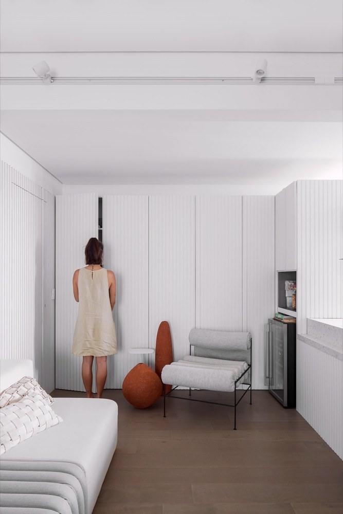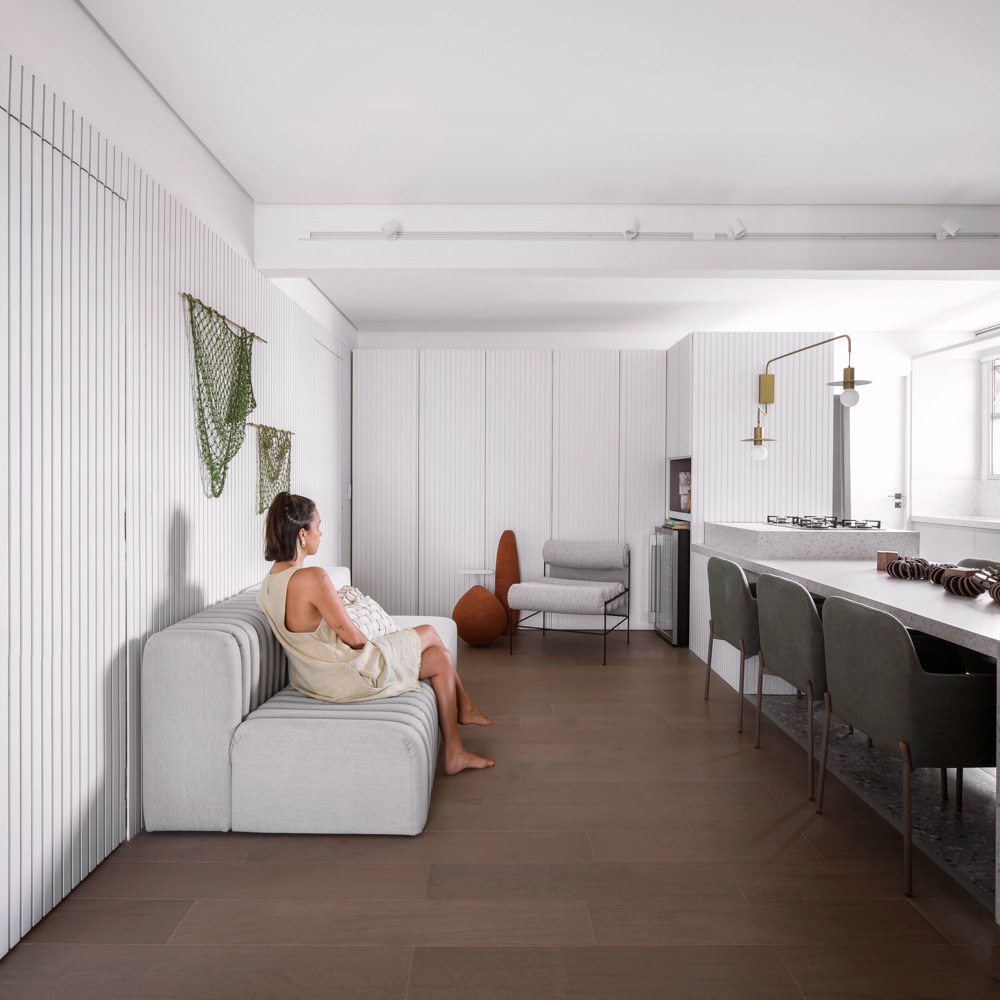 Neortodoxní přístup k prostoru se promítl do rekonstrukce jednoho z brazilských bytů v saopaulské čtvrti Itaim Bibi. Architektky ze studia flip arquitetura se v rámci renovace rozhodly zcela redefinovat formu i funkce, které jsme zvyklí do obytných prostor promítat. Vznikl tak přinejmenším netradiční byt, ze kterého navzdory všem inovacím dýchá minimalismus v barevně neutrálním provedení.