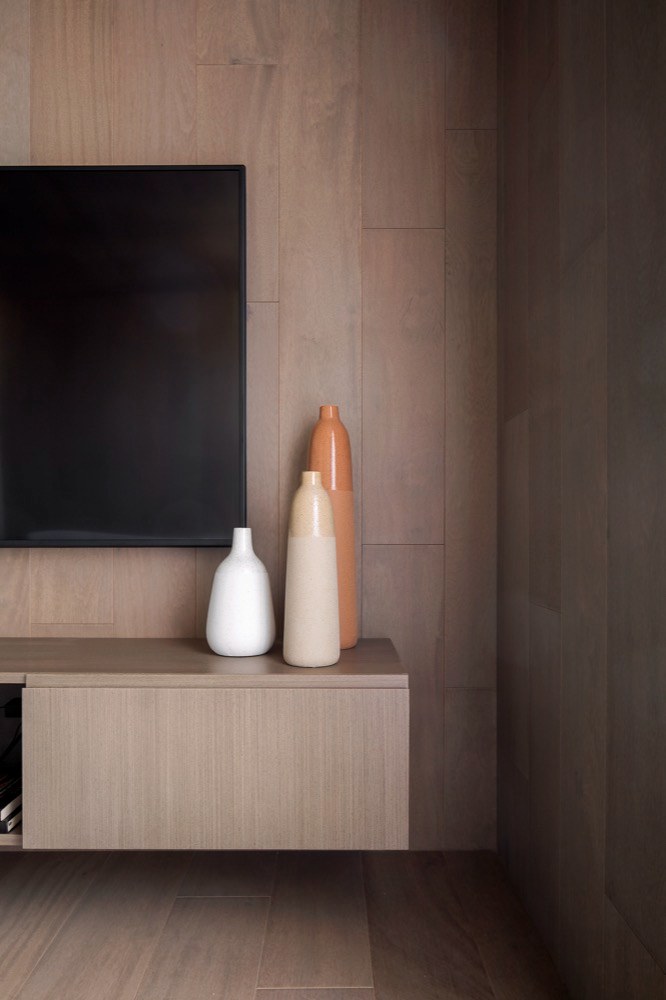 Odkaz původního bytu připomínají vybrané stavební i designové prvky téměř nepozorovaně začleněné do interiéru. Například umně využité stropní překlady, které celé proměně dodávají zajímavou osobitost. V kombinaci s rozměrnými lamelovými panely, které se autorky v rámci realizace rozhodly využít, dostal byt do vínku mimořádně působivý charakter. Nezbytnou samozřejmostí jsou také vestavné úložné prostory, které důmyslně využívají každý dostupný centimetr místa, a to je na podlahové ploše 75 m2 zkrátka potřeba. Zřejmá inspirace minimalistickou architekturou a designovou čistotou prostupuje realizací skrz na skrz. Jednoduchá barevná paleta v tomto rytmu udává tempo celému interiéru a za žádnou cenu se nehodlá uchýlit k nudnému bytovému klišé.