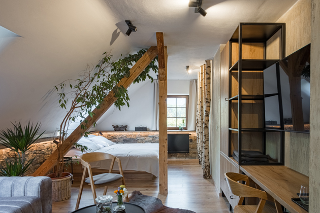 Kmeny bříz a kameny z nedalekých Pusteven jsou nejnovější součástí příběhu, který už přes 200 let vypráví stavení v Trojanovicích. Po rekonstrukci se dům na úpatí Beskyd stal místem, kde se mísí atmosféra starých časů s komfortem moderních technologií a možností relaxace v lesním wellness či u krbu.