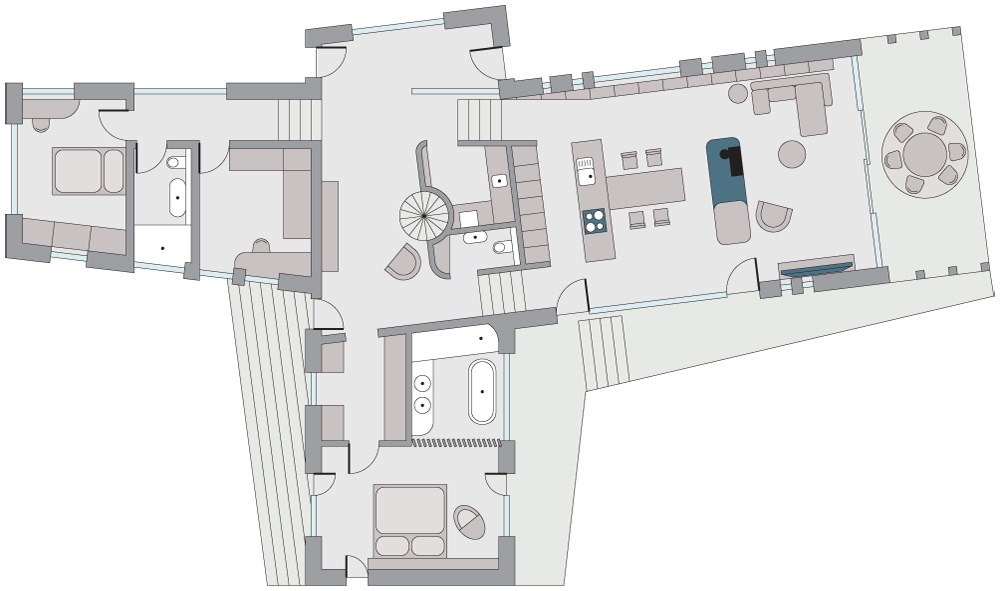 Můžete popsat specifika půdorysného řešení? Například rozdělení a naopak navázání jednotlivých funkčních zón?