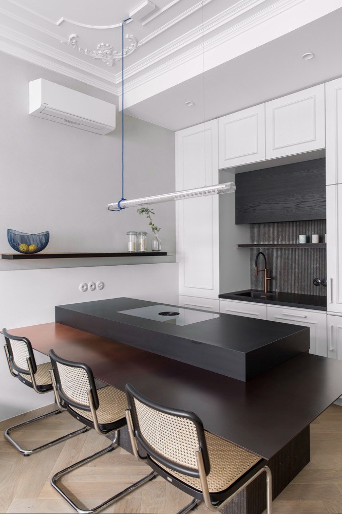 Majitelé jsou obdivovateli designu a tyto kousky si do bytu přinesli z bytu předchozího. Na jednu stranu byl tedy klient velice nakloněný novým nápadům a nebál se použít i dražší světové značky také v podobě jednotlivých materiálů, což se nám hodilo, na druhou stranu bylo ale výzvou ho něčím novým překvapit a zároveň to dobře zkombinovat, aby to nebyl jen showroom designových kousků.