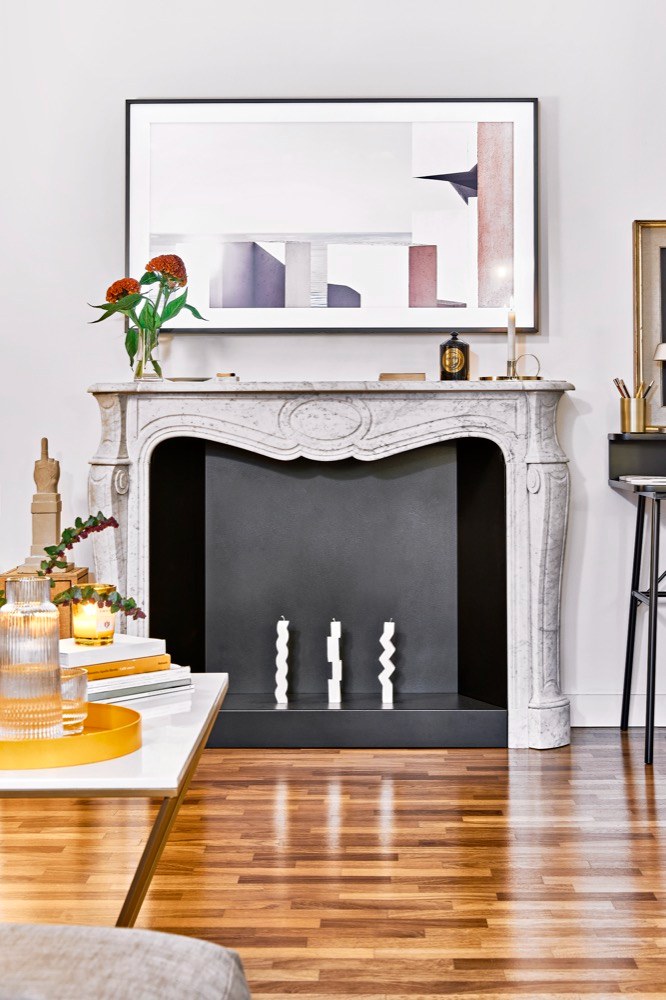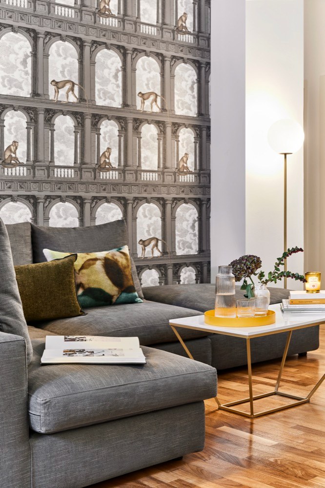 Rozhodně ozdobte zeď, před kterou se nachází, tím nejlepším možným způsobem, aby se stala hlavním hvězdou aranžmá a upoutala pozornost, jakmile vstoupíte do obývacího pokoje. Já jsem zvolila velmi ikonickou tapetu, která ovšem respektuje styl pokoje a zvolenou paletu barev.