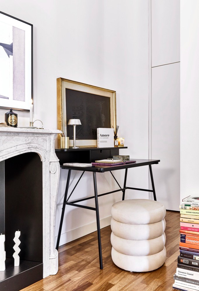 Ke vchodu jsem usadila dílo od neapolské umělkyně Roxy in the box, která vidí svět a Neapol očima pop-artu. Vybrala jsem si obraz s názvem A Martyr to Drink – Saint Patricia, postavu, kterou mám velice ráda. Pokud lze, nemělo by chybět zrcadlo pro rozšíření vnímání prostoru.