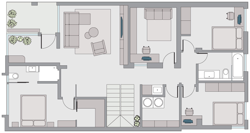 Co víc, otevírá také vstup na dvě střešní terasy, které poskytují bohaté výhledy do okolí a navíc majitelům umožňují trávit dostatek času venku, a přitom stále v bezpečí vlastního domova.