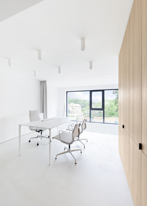 Koncept celé vily stojí na účelné kombinaci světlých a tmavých odstínů, aplikovaných vždy v závislosti na významu a funkci daného prostoru. „Tímto způsobem jsme se snažili využívat potenciálu psychologie barev, kdy jsme světlé tóny používali primárně v aktivních denních zónách, zatímco ty tmavé naopak v prostorech určených k relaxaci a zklidnění,“ popisuje spoluautor návrhu Roman Vrtiška. Napříč všemi čtyřmi podlažími se tak ve vzájemném kontrastu nesou bílá a černá barva, pocitově utlumené použitím dřeva.