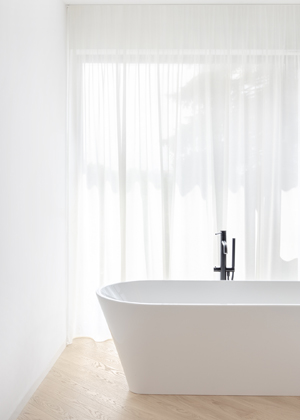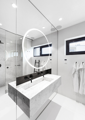Kontrastní kombinace světlých a tmavých tónů, které jsou součástí důmyslné hry architektů s psychologií barev, dodávají novému interiéru čtyřpodlažní vily na osobitosti. Její rekonstrukce přinesla také změny dispozičního uspořádání včetně ubourání části podlahové plochy a atypického umístění soukromé posilovny do nejvyššího patra domu.