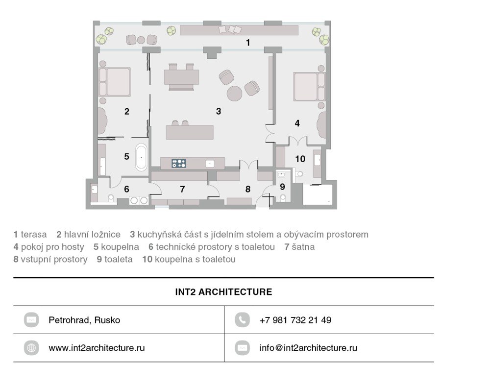 Architektonické studio INT2 architecture sídlí v ruském Petrohradu a soustředí se na interiérový design soukromých i veřejných prostor. Za jeho fungováním stojí dvojice zakladatelů ± architekti Alexander Malinin a Anastasia Ševeleva, oba absolventi architektury a civilního inženýrství na Volgogradské státní univerzitě. Jejich realizace jsou charakteristické neotřelým přístupem k severskému minimalismu s důrazem na užití střídmé barevné balety a přírodních materiálů ± především masivního dřeva.