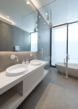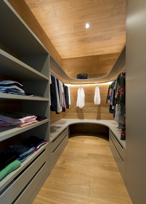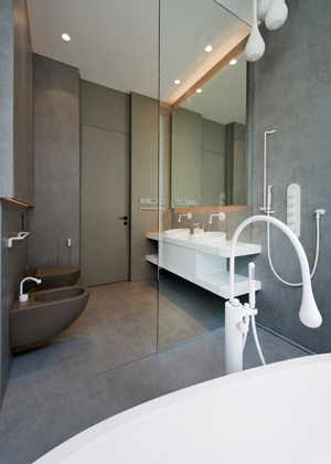 Dva pokoje pro hosty mají k dispozici koupelnu s WC, skrze niž je možné vstoupit do technické místnosti. V soukromé intimní zóně na hlavní ložnici navazuje šatna a hned vedle je i koupelna s vanou. Prosklenými stěnami ložnice se nabízí přímý výhled do atria i zahrady.