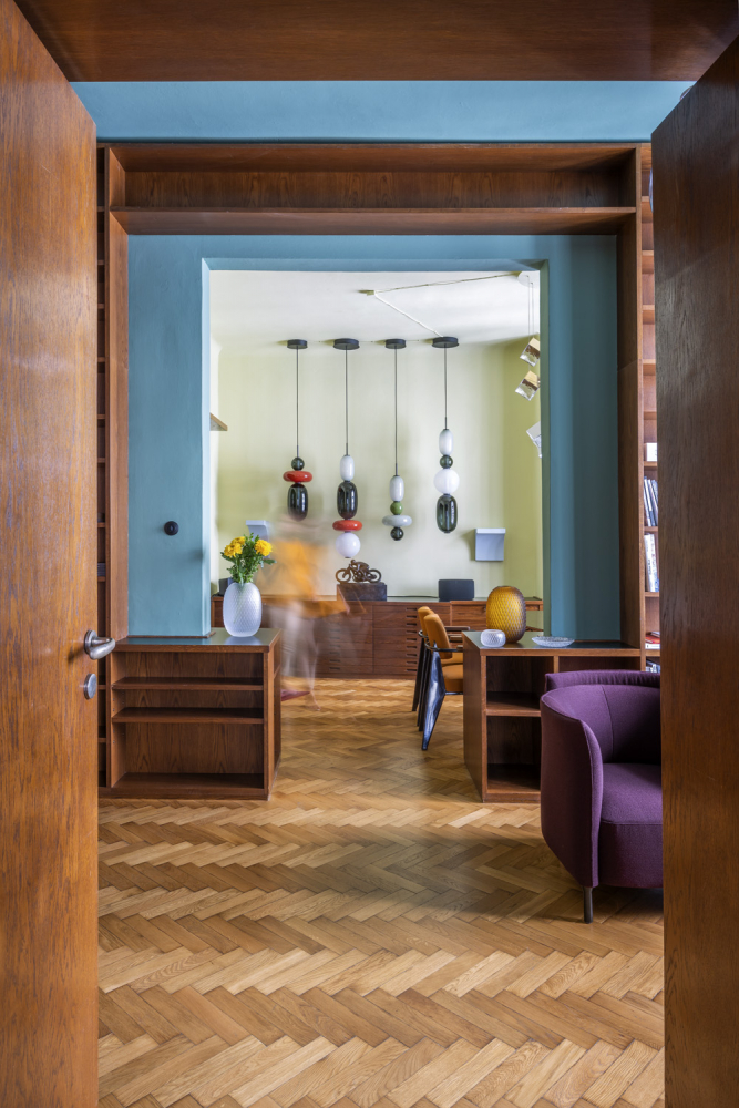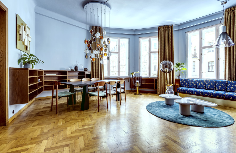 Členitý interiér prvorepublikového bytu kdysi obývaného rodinou Adolfa Hoffmeistera slouží k působivé prezentaci všech kolekcí a zároveň je inspirativním prostorem pro zajímavá setkání. Provedla nás marketingová ředitelka značek Bomma a Rückl Eva Kozarová.
