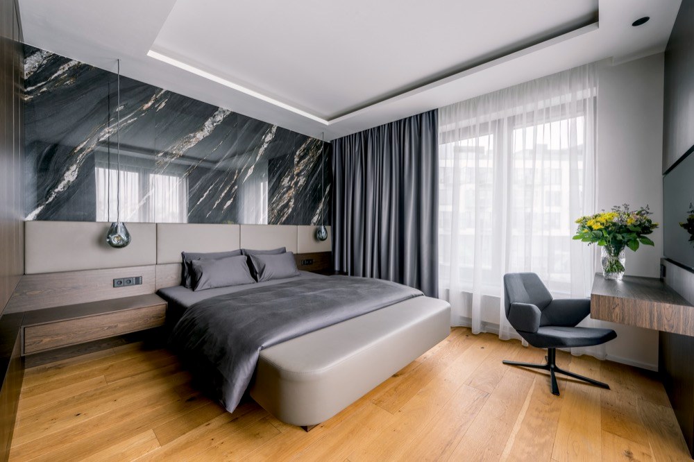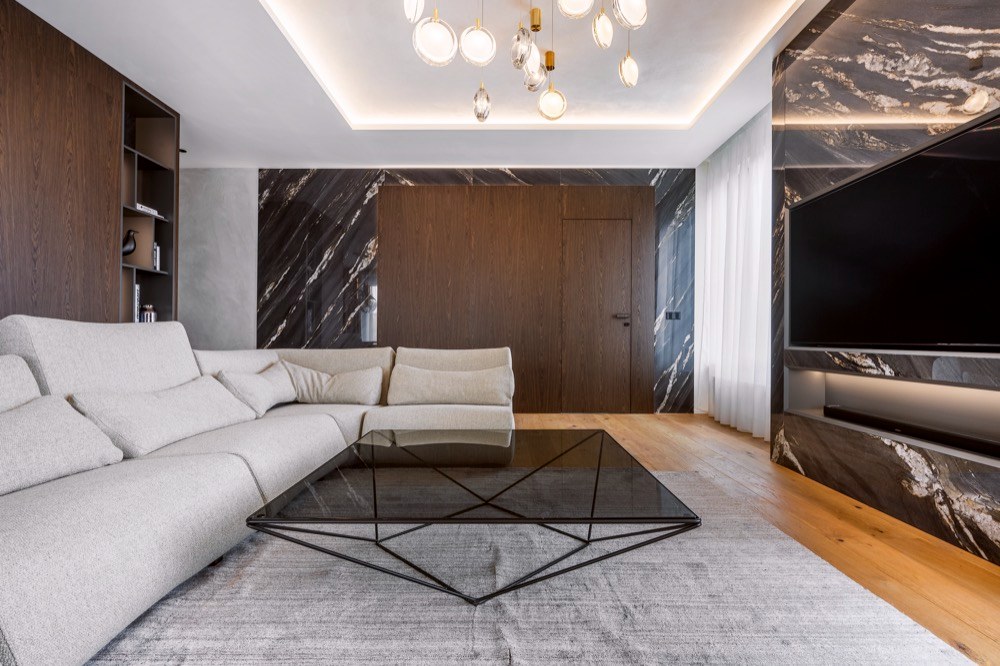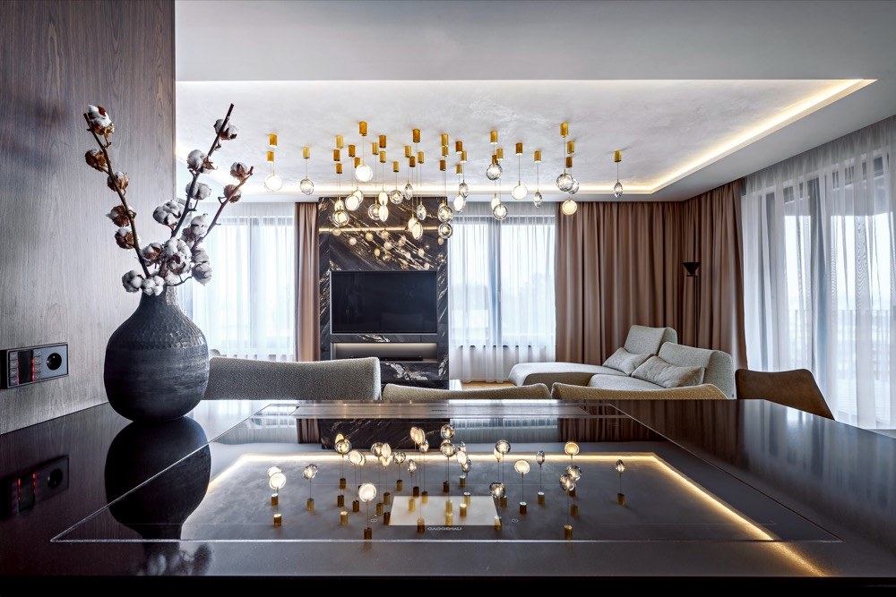 „V návrhu jsme intenzivně pracovali i s celkovým nasvícením interiéru a vzhledem k možnostem využití „inteligence“ v bytě i s různými světelnými scénami. Důležitá tedy byla realizace sádrokartonových podhledů nejen pro vedení elektroinstalací, ale zejména pro modelaci kapes v podhledu pro ambientní osvětlení obývacího prostoru a ložnice,“ doplňuje architekt Matěj Mlch z ateliéru de.fakto, který se zabývá všemi typy zadání, u nichž jsou od počátku kladeny vysoké nároky na architektonickou formu díla a individuální přístup. Cílem a závazkem je absorbování veškerých aspektů záměru investora a návrh takového řešení, které je bez výjimky splní a svou formou s důrazem na detail bude jeho očekávání i překonávat.