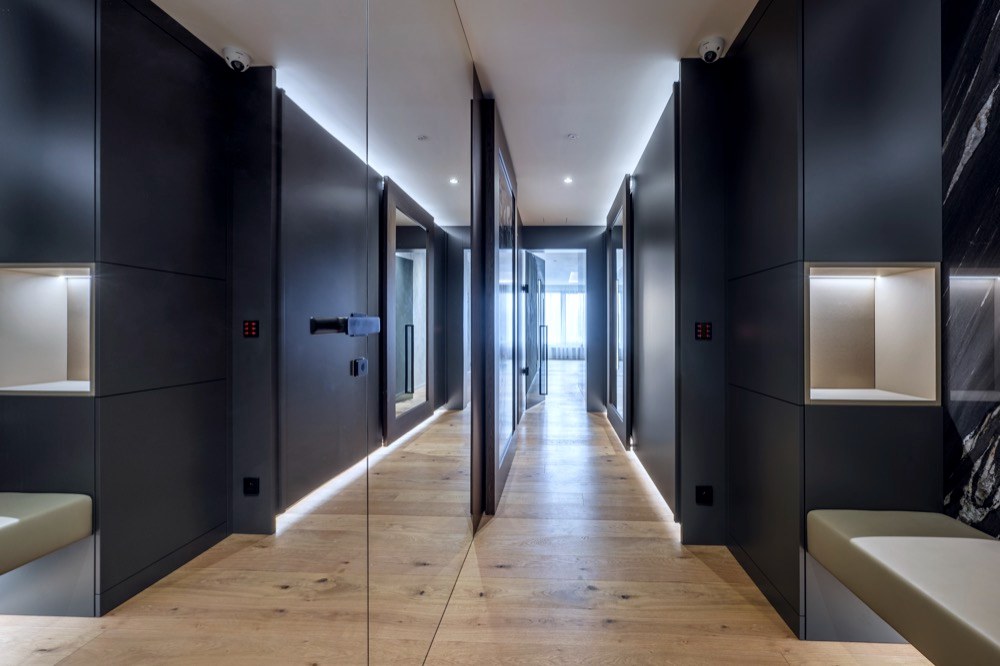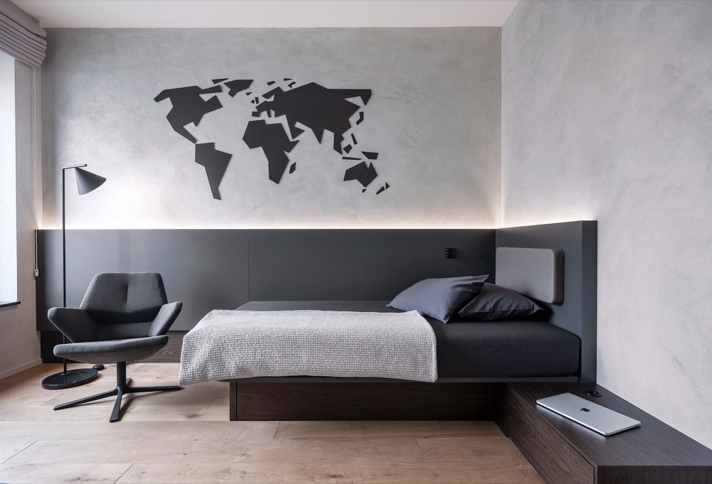 Zahraniční klient a majitel bytu o výměře 170 m2 v novostavbě developerského projektu v Praze požadoval vytvoření komfortního zázemí, které by užíval během svých častých cest po světě. Očekával dodání interiéru na klíč. Vášnivý barista a sportovec vložil svou důvěru v dovednosti architektů Matěje Mlcha a Filipa Hejzlara z architektonického ateliéru de.fakto.