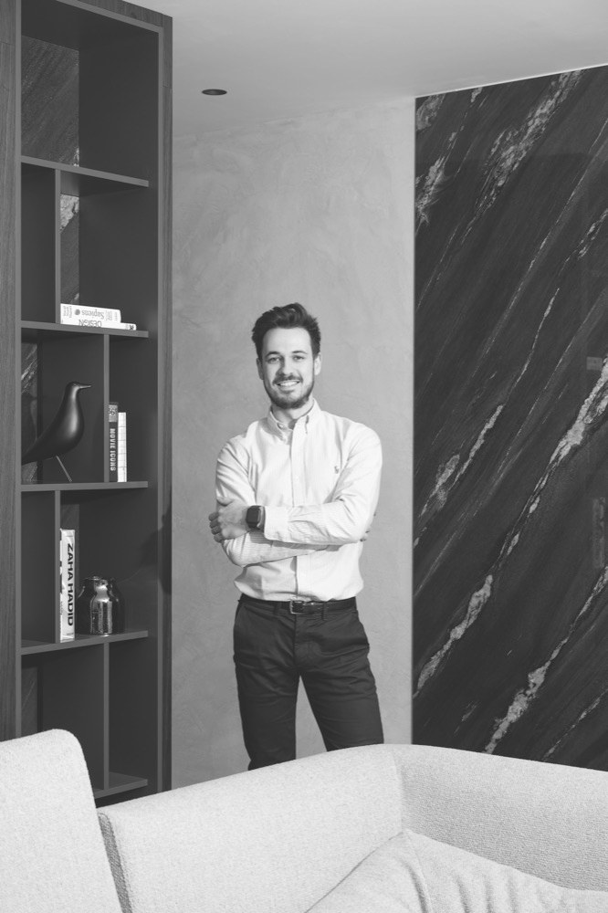 Majitel se rozhodl pro studio de.fakto na základě jeho dlouhodobé spolupráce s developerem projektu, a především pro jeho schopnost dodat kompletní realizaci na klíč. „Majitelé nám v úvodu spolupráce nastínili preferovanou atmosféru a design, který spočíval zejména v kombinaci tmavých povrchů, a jistý punc exkluzivity, kterou si přáli do interiéru vnést. Soustředili jsme se především na vhodné uzpůsobení dispozice představám klienta,“ popisuje architekt Matěj Mlch.