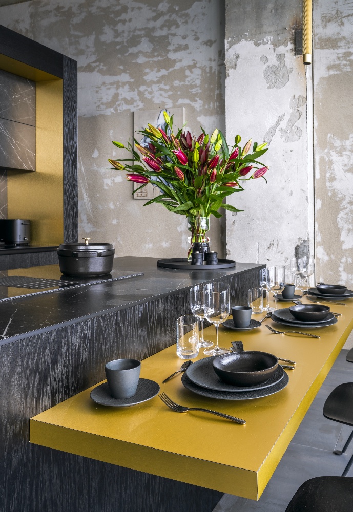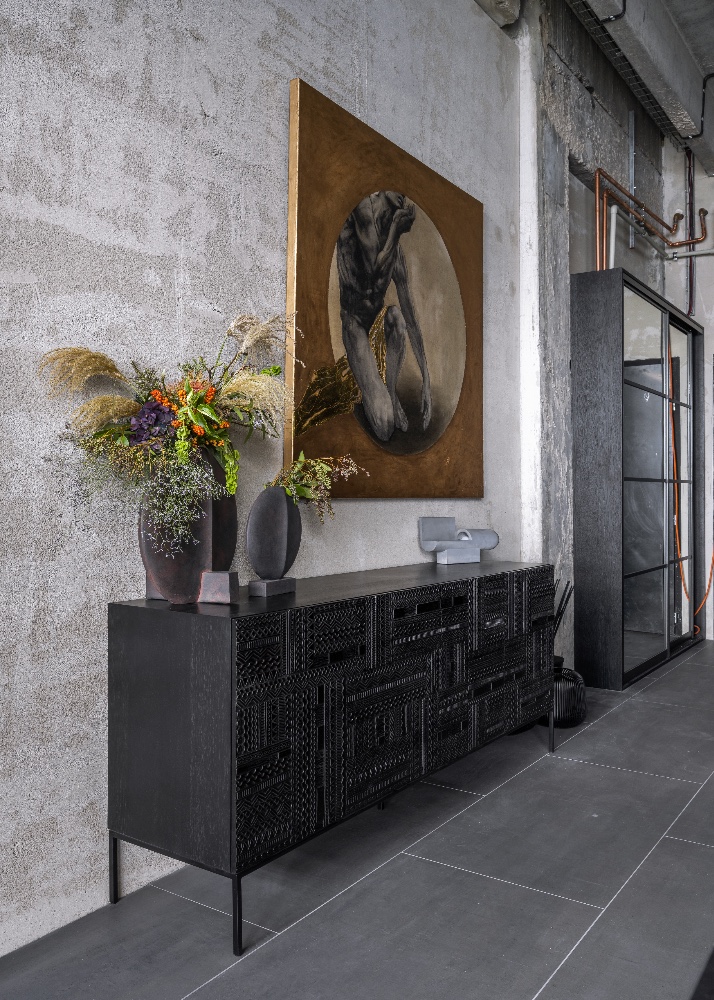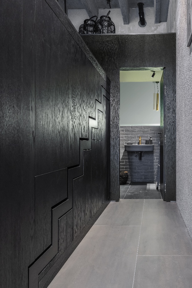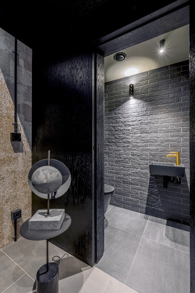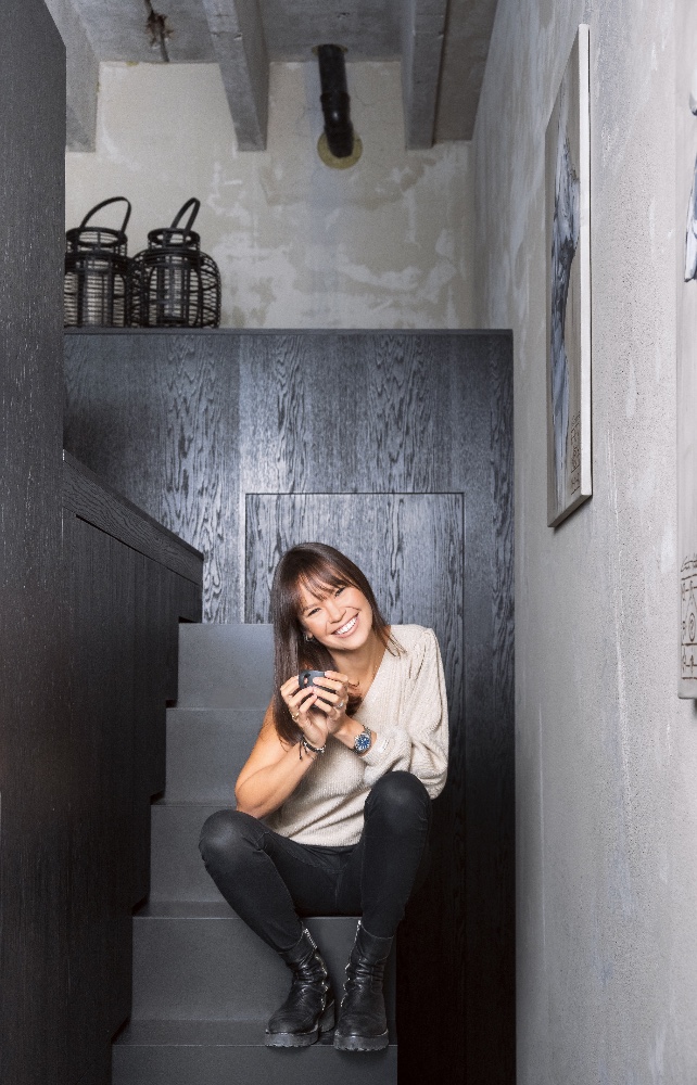 Doma preferujeme spíš světlé barvy, je to v kontrastu k interiéru, v němž se právě nacházíme. Moc se mi to zde líbí, má to šmrnc, ale nemám s tmavými barvami vůbec zkušenosti a nevím, zda bych je sama dokázala takto sladit.