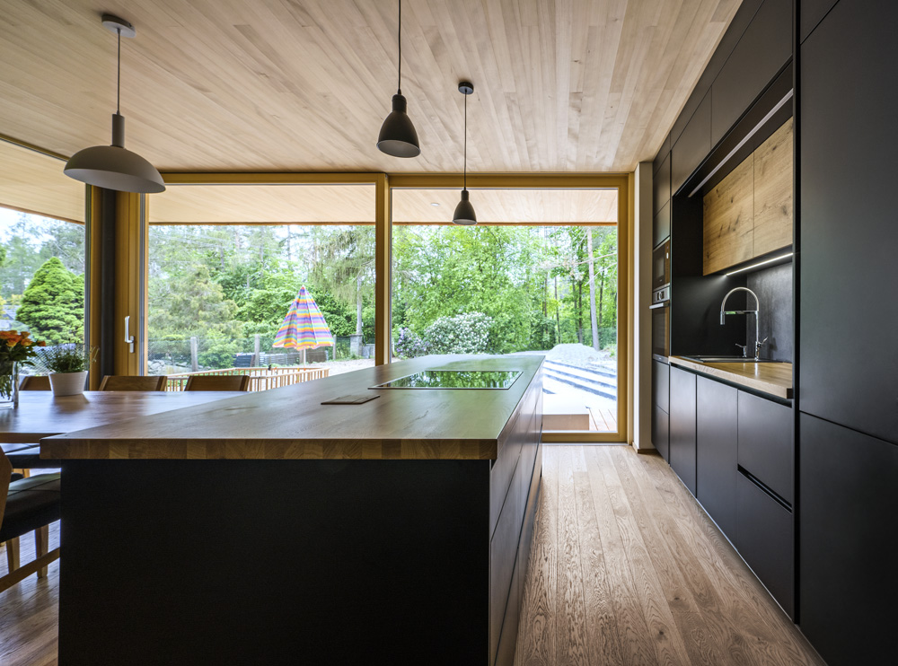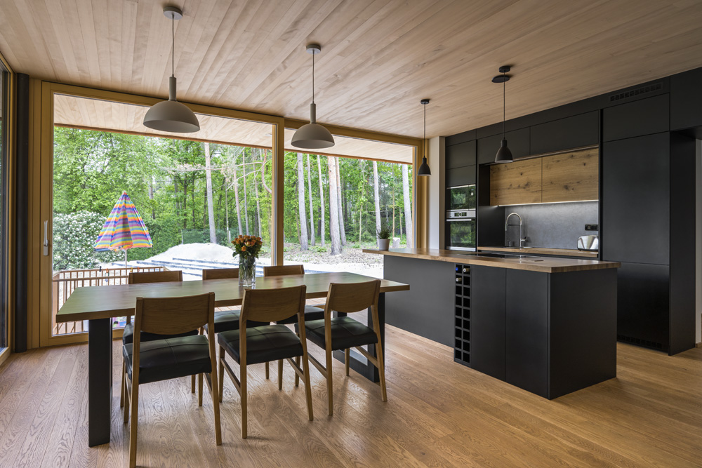 Oba manželé mají rádi přírodní materiály, což se promítá i do jejich obydlí. Žijí v dřevěném domku ve stylu bungalovu a i uvnitř je vidět, jaký styl je jim blízký. Původně plánovaná bílá kuchyň se jim zdála jako ideální nadčasové řešení, které bude dobře ladit s podlahou i dalšími dřevěnými prvky v domě. Ve studiu se ale přesvědčili, že se ke dřevu skvěle hodí i černá barva.