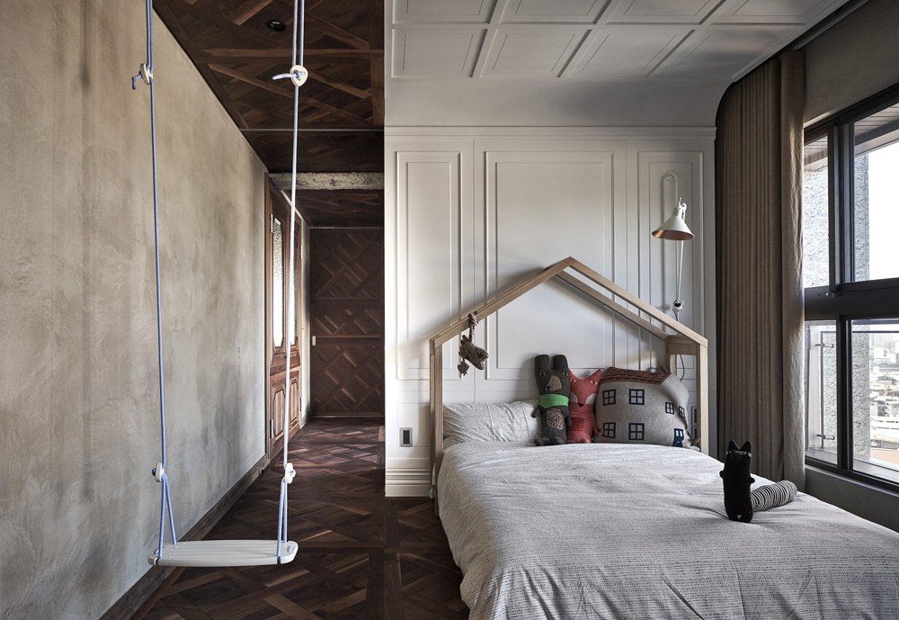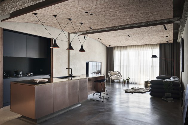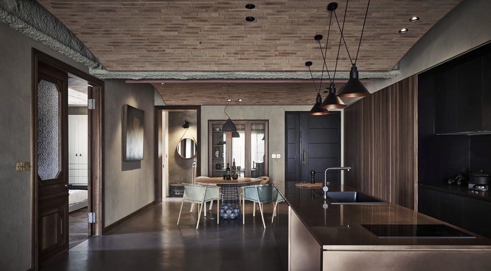 Na prostoru téměř 125 čtverečných metrů s třímetrovou výškou stropů se velmi rychle projevila zásadní výzva – masivní ocelový nosník a nepřehlédnutelné hlavní potrubí vedené po stropě. Architekti Chuan-Ta Tsao a Kuan-huan Liu se proto v rámci řešení celkové koncepce bytu rozhodli pro jistou formu dekonstruktivismu. Ocelový nosník a strop od sebe proto oddělili takovým způsobem, aby každý z nich mohl zcela nezávisle na druhém vykonávat svou funkci.