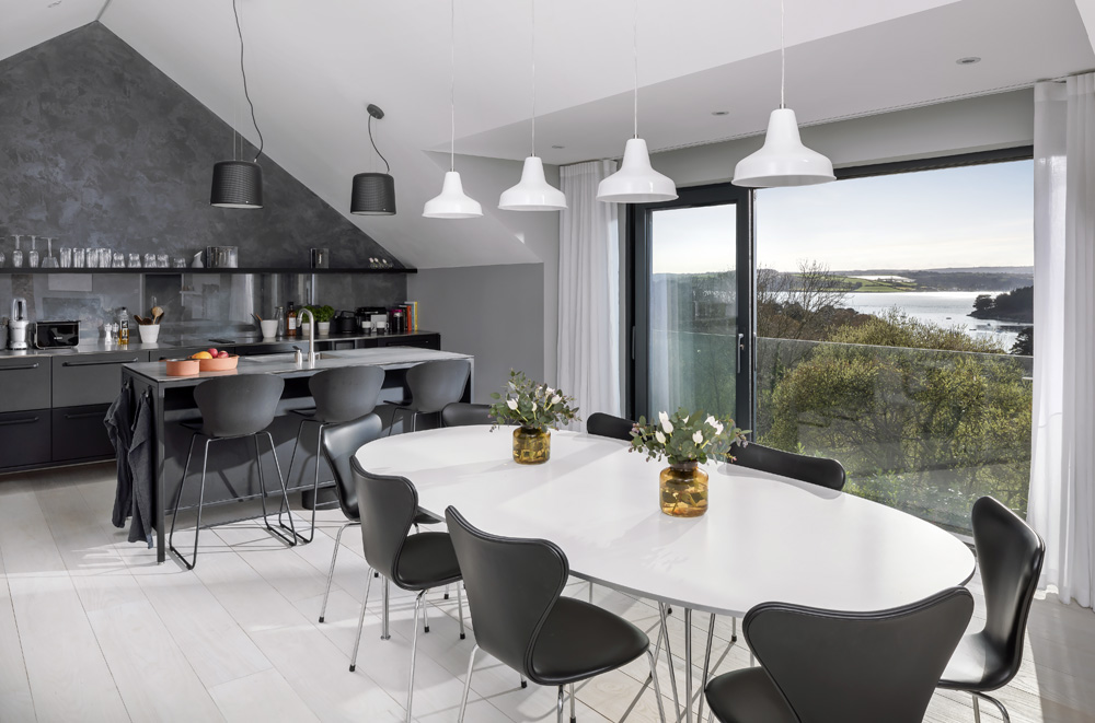 Jen málo míst v Cornwallu se dá srovnat s Roselandem, jedním z nejmalebnějších a téměř nedotčených koutů Britských ostrovů. Pokud si s ním vytvoříte pouto, je prakticky nemožné ho zpřetrhat. Majitelka domu v tomto kraji trávila od dětství volný čas na rodinné chatě. Když zahlédla nedaleko od ní pozemek k prodeji, nezaváhala ani okamžik. Vyrostl na něm jednoduchý moderní dům postavený s respektem k okolí a s výhledem na měkké linie jižního pobřeží Cornwallu.