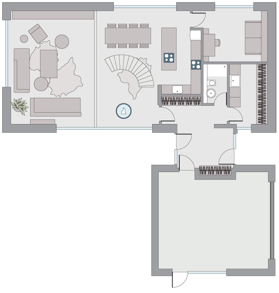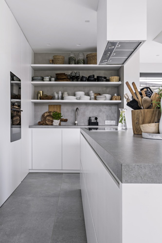 „Nechtěla jsem, aby interiér působil příliš okázale, ale ani moc uvolněně a venkovsky,“ popisuje majitelka. „Architekt nás dobře poznal a správně pochopil. Přála jsem si velká okna, prosklený výhled do zahrady a také velký stůl pro osm osob,“ dodává. Manželé dbali na dostatečné množství úložných prostorů a velmi je výsledným efektem potěšilo řešení skrytých zárubní dveří.