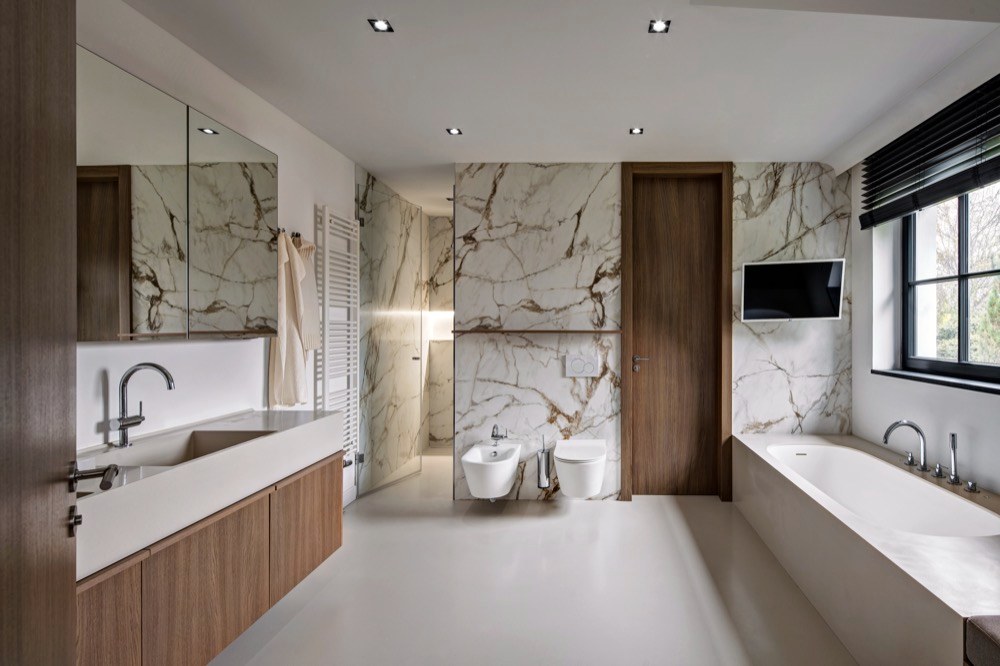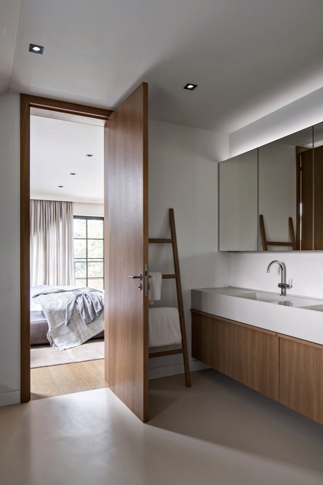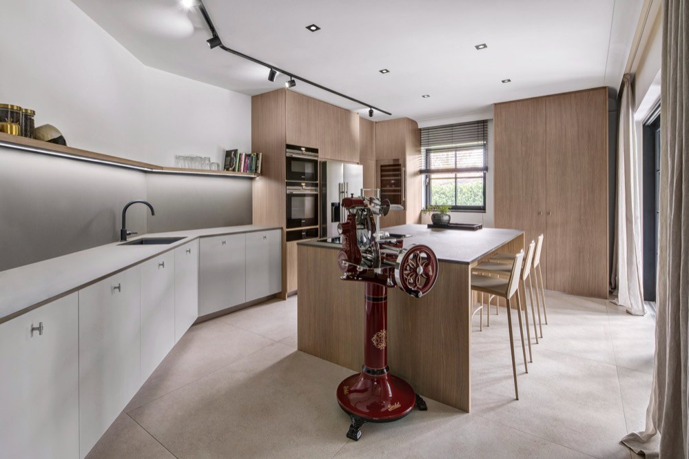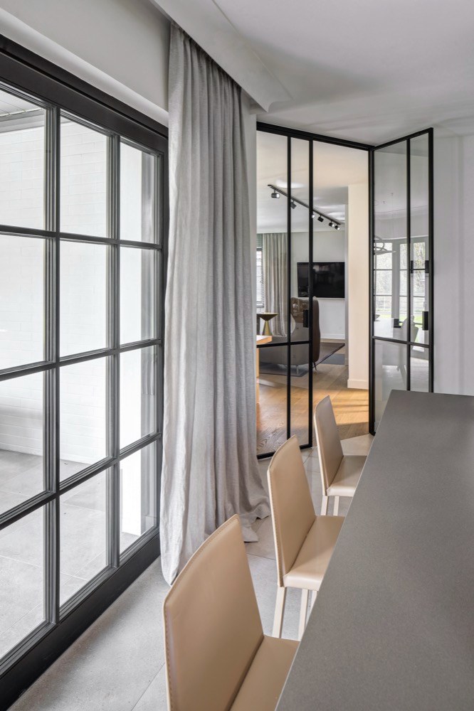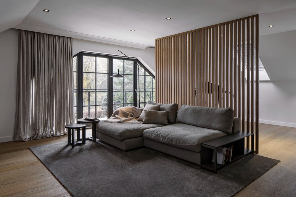 Manželé si zvolili studio Miramari Design na základě prezentovaných realizací, které je zaujaly a jevily se jim jako nadčasové a založené na kvalitních materiálech i provedení. Vsadili na kvalitu s maximálním komfortem a ohledem na praktické užívání. Neprahli po přílišné modernosti, ale notné dávce nadčasovosti. „Všechny materiály byly vyvzorovány a odsouhlaseny už před realizací, během níž byla klientka s manželem po celou dobu mimo republiku. Zpět se vrátili až do zcela nového interiéru,“ říká architektka Jana Boušková a chválí: „Z pohledu architekta interiér vznikal velmi snadno, spolupráce s klientkou byla velmi příjemná, rychlá, všechny nápady i přístup k interiéru probíhal ve shodě. Při první schůzce jsme si ujasnily, jak interiér uchopit a jaký by měl být výsledek. Klientka přesně věděla, co chce, a dokázala srozumitelně definovat svá přání. Měla vkus i cit pro detail a ani v nejmenším se od svého záměru během spolupráce neodvrátila, naopak byla otevřená novým návrhům. Byla to opravdu výjimečná spolupráce.“ Jedním z důvodů, proč padla volba na studio Miramari Design, byl i fakt, že často spolupracuje s klienty, kteří po dobu rekonstrukce žijí či pracují v zahraničí a nejsou realizaci přítomni. „Jejich důvěry v nás a naši práci si vždy velmi cením. Pro nás je taková spolupráce velmi zavazující. Námi zvolení dodavatelé musejí být velmi spolehliví, v opačném případě realizace na klíč nemohou dobře dopadnout,“ vysvětluje architektka. Sáhla například po českém výrobci ručně vyráběných oken Antikhaus, kování značky Formani a pro fasádu navrhla obložení Klinker, cihly v bílém nátěru. „Styl interiéru bych charakterizovala jako střídmě moderní s trochou belgického nádechu,“ vyjadřuje svůj přístup k zakázce Jana Boušková, jíž se podařilo do interiéru začlenit vše, co navrhla a co si přála, díky naprosté shodě s klientkou. „Pokud má interiér vyznít jako celek v souladu, není možné, aby dýhované prvky dodávalo více firem. Pokud se vybere jeden typ a odstín dýhy, je žádoucí, aby pak byla použita v celém interiéru, v tomto domě na dveřích, v kuchyni, na koupelnovém nábytku, na nábytkové sestavě v obývací části či paravánu v patře. Zaujala mě značka Orac Decor, jejich nabídka je opravdu velká. Ráda doplňuji interiéry jejich lištami. Zde byly použity vysoké podlahové lišty a stropní lišty, které příjemně podtrhnou interiér jako celek. Takový detail u stropu mám velmi ráda,“ zmiňuje architektka.
