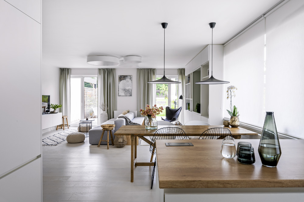 S manželem se rozhodli věnovat domu nevšední péči a vybudovat kvalitní nadčasový interiér, který tvořili pod vedením interiérové designérky Markéty Fleischnerové. Dispoziční řešení už bylo dané, proto se snažili ovlivnit to, co bylo s přiměřenými finančními nároky možné. Podařilo se zachytit fázi holého domu. Přáli si utvářet jeho interiér jako moderní s důrazem na přírodu. Majitele oslovují interiéry čisté a minimalistické. Mají v oblibě severský design, milují přírodu a toužili po střízlivém uklidňujícím domovu v monochromatickém ladění.