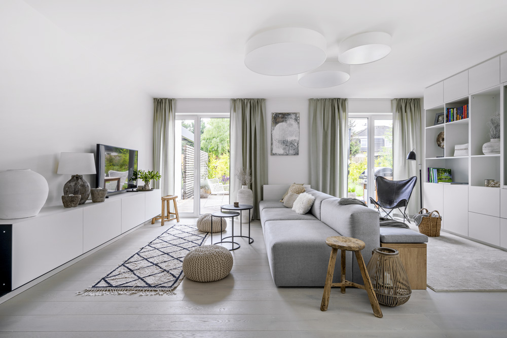 Při volbě místa jejich domova sehrála velkou roli nejen estetika místa samotného, ale i místní komunita a rozvinutá infrastruktura. „Už asi před deseti lety jsem si říkala, že bych jednou ráda bydlela právě v těchto místech,“ vzpomíná majitelka. A podařilo se! Po neúspěšném hledání vlastního pozemku se tu rodině podařilo koupit od developera postavený dům i s optimální výměrou zahrady, což jim ušetřilo hodně času a starostí se stavbou.