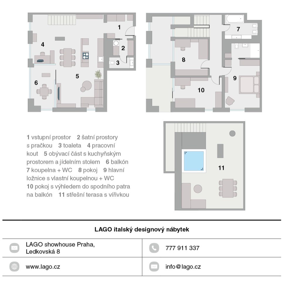 Na internetu nás velmi zaujala jedna z reklamních fotografií výrobce Lago. Navštívili jsme tedy jeho showroom v Praze, a když bylo jasné, že pro interiér zvolíme nábytek právě této italské značky, majitel české distribuce nám doporučil paní Ing. Vendulu Gazo Jelínkovou. Ta nám následně kromě konkrétních kusů nábytku pomohla vybrat také materiály podlah, ale i osvětlení a další doplňky včetně závěsů.