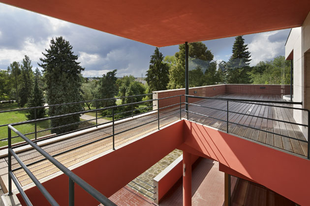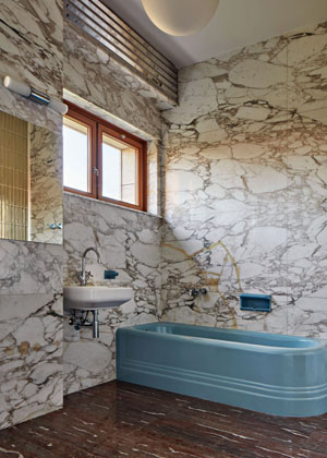 Každá místnost představuje svébytné estetické vyjádření architektů, v němž hrají důležitou roli luxusní materiály, jako jsou ušlechtilé mramory a další druhy kamenů, exotické dřeviny, sklo, kov... Neméně důležitou úlohu mají také použité barvy (terakota, zelenkavá, bordó, béžová...), které mohou působit v rámci domu jakožto díla vědeckého funkcionalismu, možná překvapivě. Nicméně zcela logicky odkazují k ideové výbavě architektů obeznámených s pocitovým funkcionalismem a poznatky o vlivu prostředí na psýché člověka.