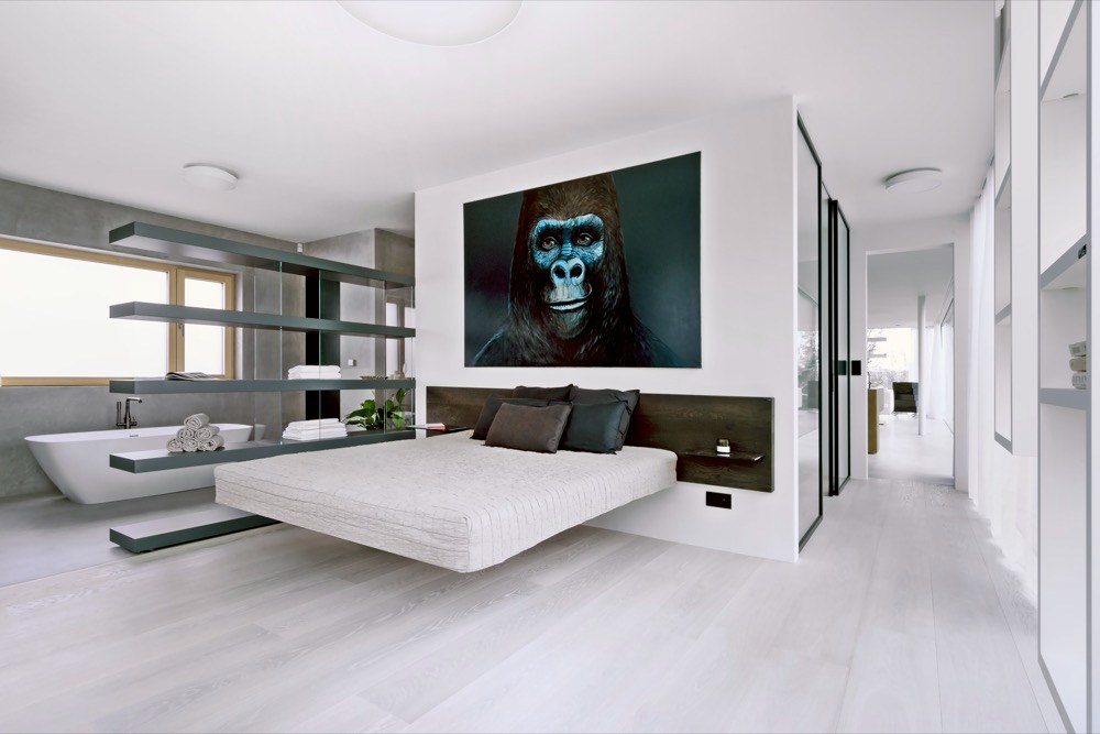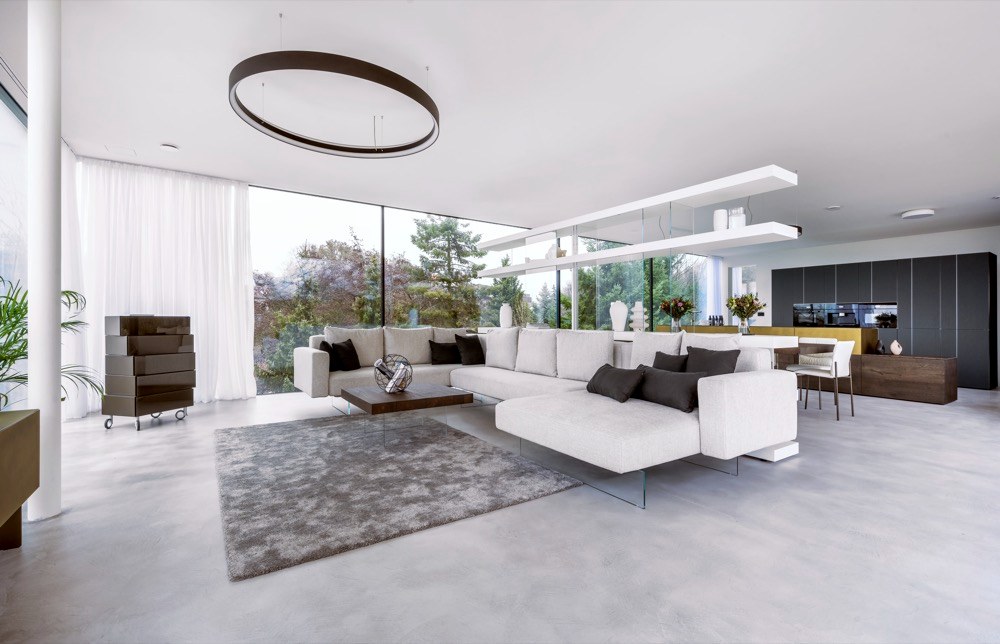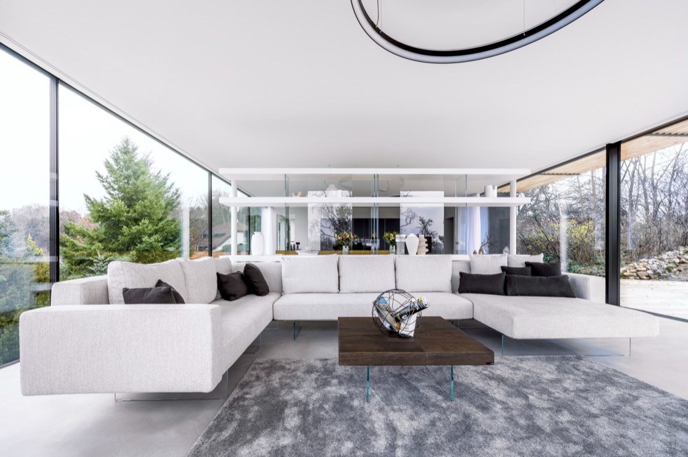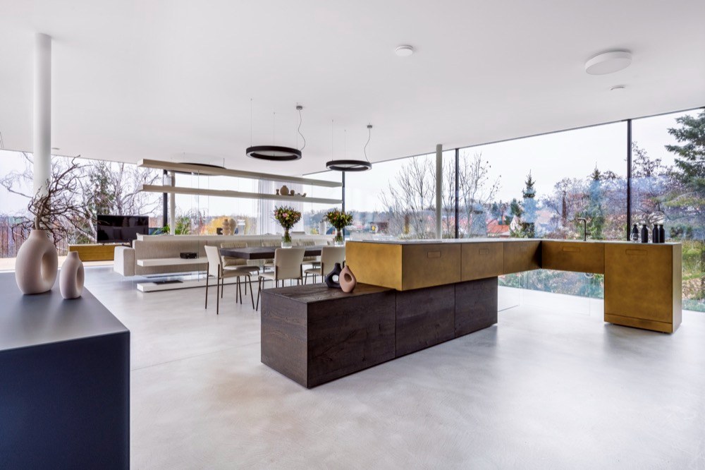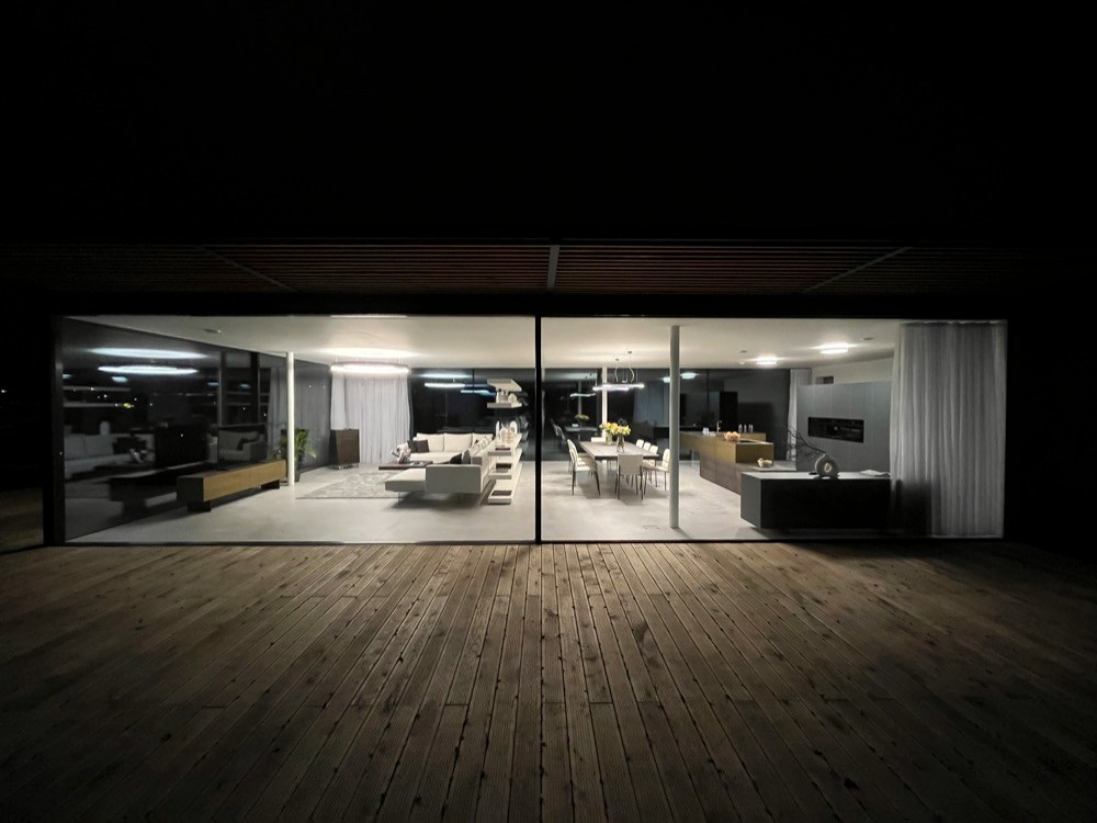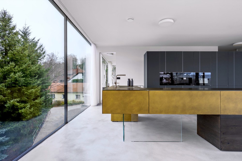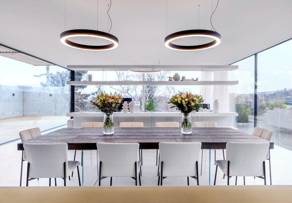 Ano! Jsme totiž obdivovateli brněnské vily Tugendhat s její funkční prosklenou fasádou a také již 100 let staré myšlenky slavného amerického architekta F. L. Wrighta, který odstranil čtyři stěny vymezující místnost, aby vznikl otevřený, kontinuální prostor s vazbou na exteriér a okolí domu. Vzhledem k tomu, že naše firma zastupuje v České republice švýcarského výrobce prosklených fasád s bezrámovými posuvnými okny air-lux a italského výrobce nábytku LAGO, je tato stavba zhmotněním naší představy o aktuální interpretaci těchto myšlenek. Autorem architektonického řešení domu je studio AIR CONCEPT, interiéry navrhoval italský architekt Alessandro Corr.