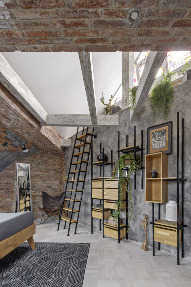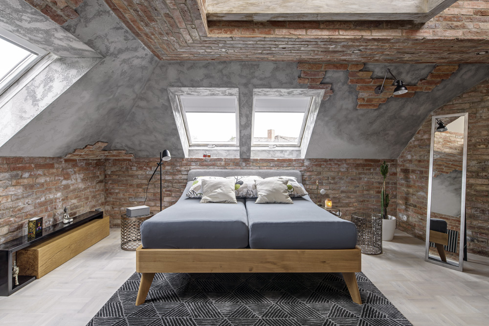Hlavní části domu už byly zrekonstruované v osobitém eklektickém stylu s industriálním nádechem. Z ložnice si majitelé přáli vytvořit příjemný odpočinkový prostor s jistou dávkou unikátnosti, ale tak, aby byl v souladu s celým domem. A to se podařilo!