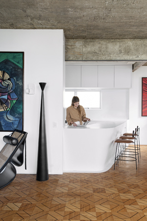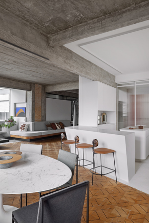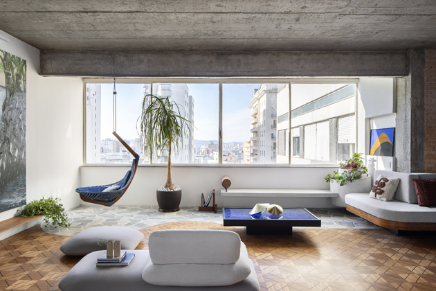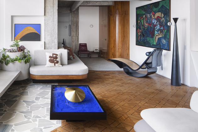 Pár cenící si umění chtěl vytvořit domov, který mu vzdává hold a zároveň vystihuje i jejich vztah k modernímu a brutalistickému stylu. Ten je navíc v saopaulské čtvrti Higienópolis, kde se jejich byt nachází, všudypřítomný. Pozoruhodný na této realizaci je fakt, že všechny obrazy architekt situoval na vybraná místa ještě před samotným zahájením procesu rozvržení nové studie. Přičemž na přání majitelů vyzdvihl především obrazy Burleho Marxe a triptych.