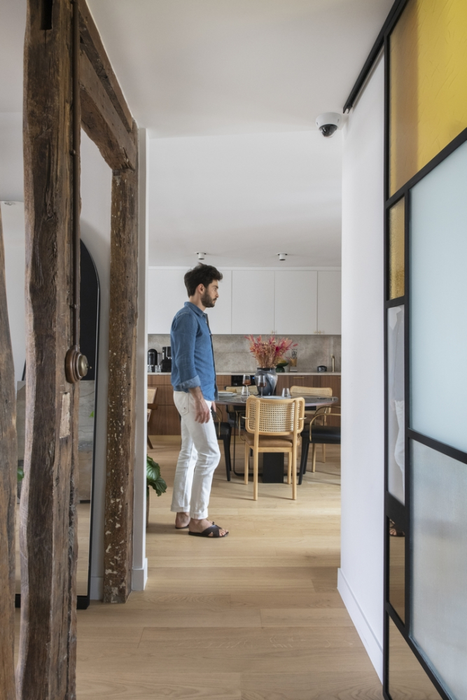 „Překvapilo mě, že v bytě 65 m2 se sedmi velkými okny je tolik světla, které nabízí různé perspektivy a tolik možností,“ říká Raphaël.