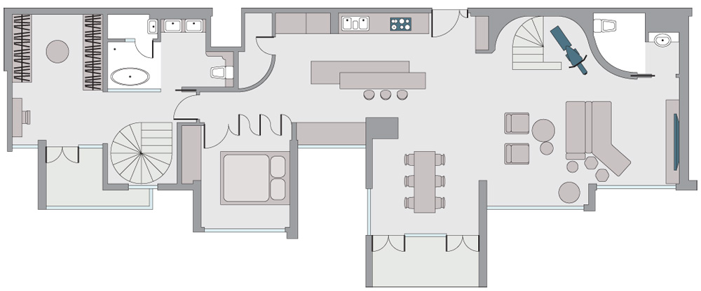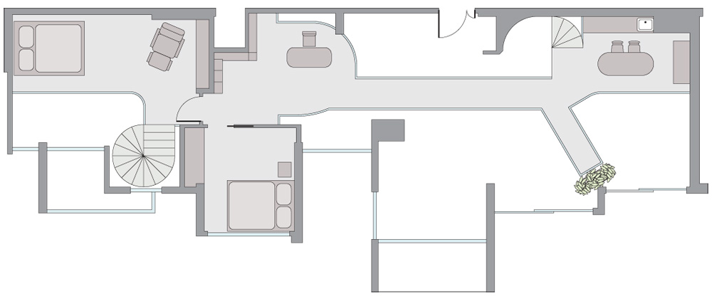 Nadšený majitel vnímá své nové sídlo v první řadě jako prostor k odpočinku s řadou romantických zákoutí, do kterých se člověk může kdykoli posadit a bez obav se zasnít. Autoři projektu ale samozřejmě nezapomněli ani na potřebné funkční prostory.