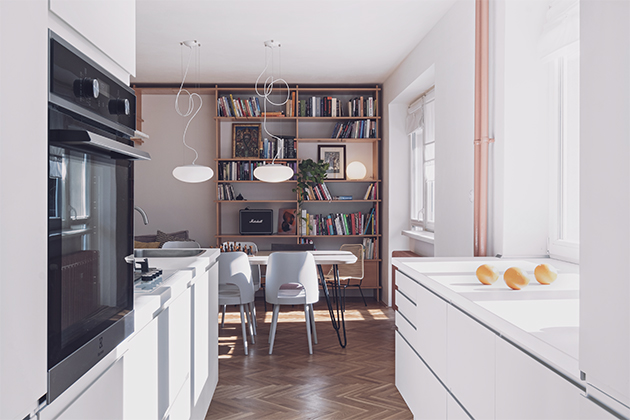 Foto: Tomáš JánaRozsáhlou rekonstrukci si vyžádal byt se štědrou podlahovou plochou 96 m2 rozdělenou do dispozice 4+1. Očekávání byla jasná – z původního pražského bytu v zástavbě ze 60. let vytvořit přívětivé místo pro rozrůstající se rodinu s dostatkem společně sdílených prostor. Součástí požadavků bylo také zachování stávajícího počtu pokojů i neodmyslitelný genius loci. „Klienti si zakládali na využití světlých barevných odstínů a dřeva. Žádali také zakomponování vybraných kusů rodinného nábytku z původního vybavení,“ objasnila výchozí zadání Barbora Vu.