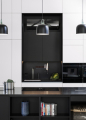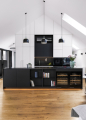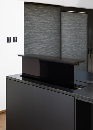 Je zde využit také štěrbinový odsavač, který je součástí varné desky. Je v podstatě neviditelný a vizuálně nenarušuje vzdušnost celého interiéru. Investor si sám zvolil konkrétní spotřebiče, které v zakázce použili. Společnost Poggenpohl Czech dodávala kuchyňský nábytek značky Poggenpohl, spotřebiče Siemens, vinotéky Liebherr a židle k jídelnímu stolu značky KFF. Výhledově s velkou pravděpodobností plánují výměnu přední fronty ostrůvku, pokud se tak majitelé skutečně rozhodnou. Vizuálně se jim kuchyň líbí. Ovšem už vědí, že bylo chybou zvolit si černou barvu na ostrůvku. Je totiž velice náročná na údržbu.