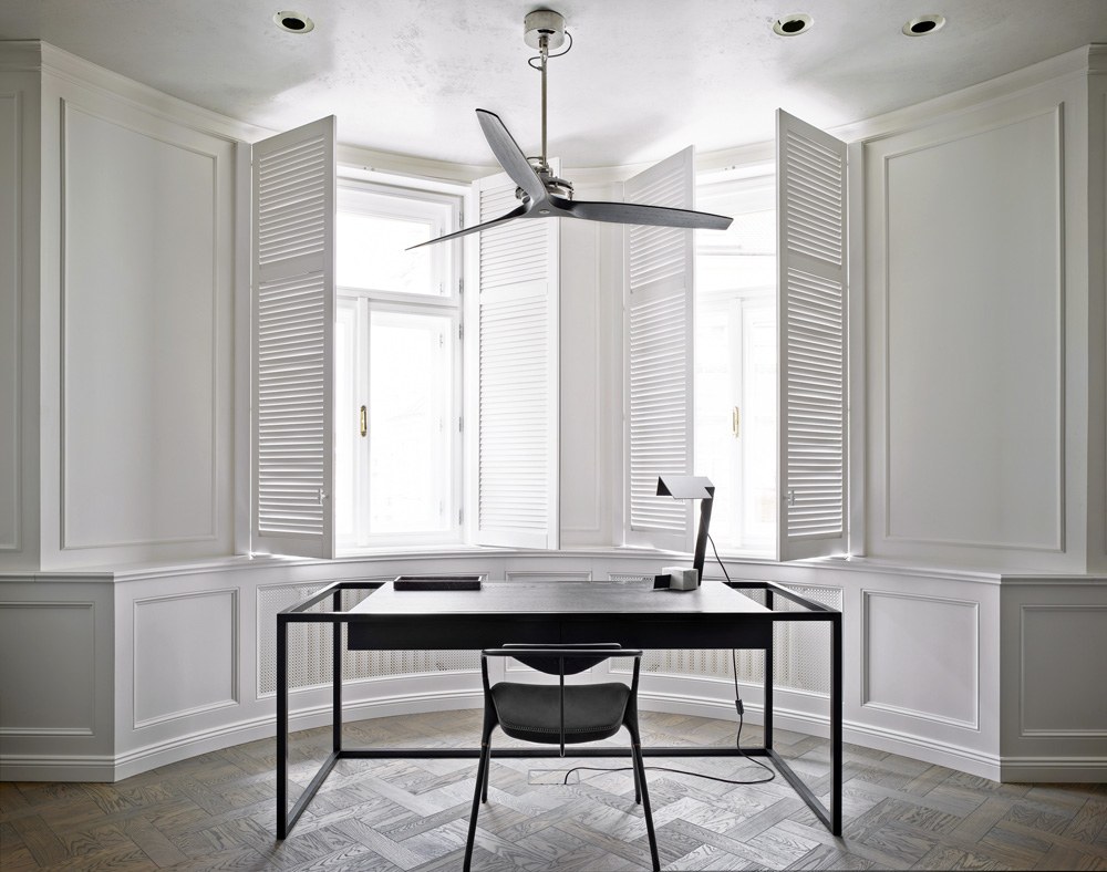 Dalším výrazným prvkem interiéru jsou vnitřní okenice sloužící pro plnohodnotné zastínění i jako jemná dekorace. Mimo centrální část bytu se nachází ložnice, na kterou navazuje šatna a koupelna oddělená pouze sklem opatřeným fólií s ombre efektem – ten umožňuje optické spojení koupelny s okolními místnostmi, aniž by do ní bylo vidět. V opačné části bytu jsou dětské pokoje s vlastní koupelnou, která je laděna do světlých tónů a doplněna tapetou s motivem velryby a nerezovými bateriemi s růžovým tónováním. Samozřejmostí je kvalitní řešení úložných prostor na míru v rámci celého bytu a také důraz na vysoce funkční umělé osvětlení vestavnými svítidly doplněnými o výrazné solitéry. Výsledkem je dokonalé zázemí vzbuzující silný estetický dojem.