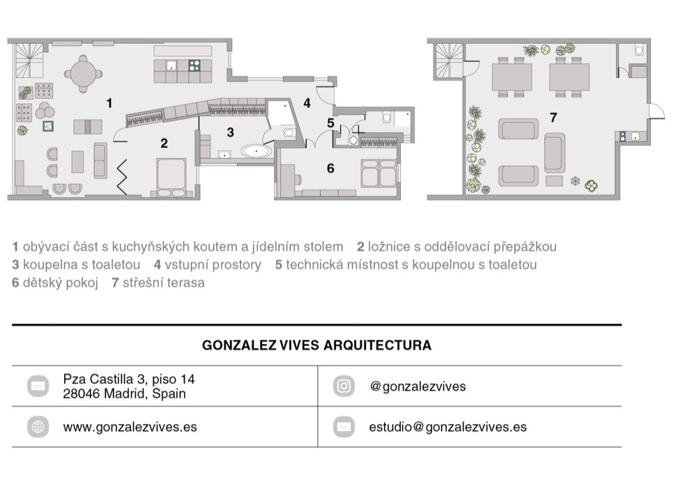 Dvoupodlažní byt, jenž je součástí kompletně zrekonstruovaného domu z padesátých let minulého století, se vymyká současnému trendu separace a navrací se k původní myšlence sdílení. Balancuje na hraně soukromí a potřeby moderního člověka být neustále v bezprostředním kontaktu se světem. Všechny místnosti jsou zde propojeny – více účelových zón tak dohromady tvoří unikátní mezonet.