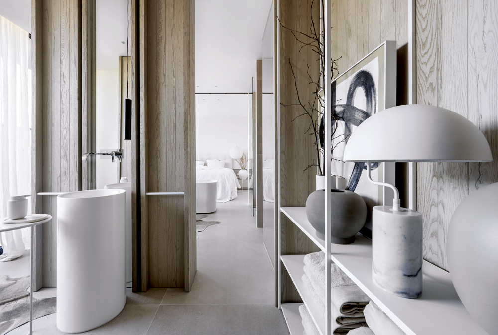 „Inspirací pro tento dům mi do jisté míry byly kalifornské bungalovy v Palm Springs – atmosféra 50. let, ovšem moderně zpracovaná – ležérní noblesa a ušlechtilost, zabydlený minimalismus, ale vše v jednoduchých tvarech – koule, polokoule a linka,“ upřesňuje svůj koncept architekt Martin Frank ze studia Deconcept, který vyladí vaše domovy až do úplného finále. Nabízí svým klientům celistvý koncept dotažený do posledního detailu včetně stylingu. Jde svou vlastní cestou a přináší vize odrážející mnoho vlivů z všedního života. Ve výsledku vám namíchá chutný koktejl stylového domova, který bude nadčasový, funkční, příjemně ležérní, uvolněný a pohodlný.