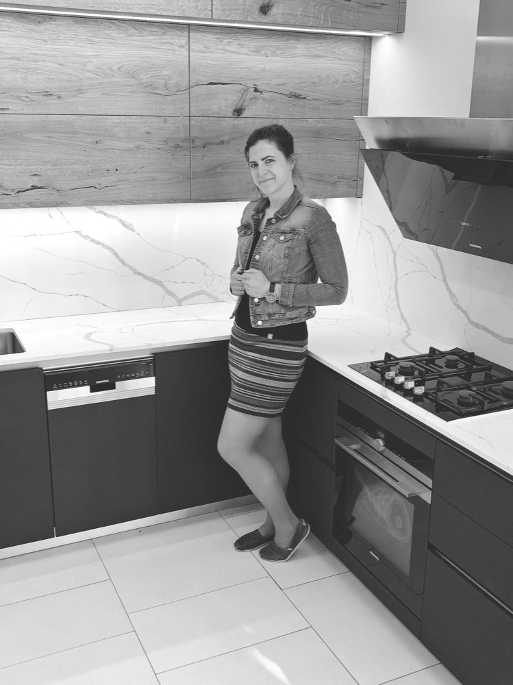 Pro návrhářku společnosti JN Interier šlo o velmi zajímavý projekt, do kterého se musely promítnout někdy i rozdílné představy obou manželů. Hlavní slovo u zařizování kuchyně a obývacího prostoru měla paní domu. Obě se shodly, že k povrchu dřevěné dýhy, kterou si majitelka v domě přála, se bude skvěle hodit černá barva. Návrhářka jí doporučila lakovaný nábytek v extra matném provedení, které působí měkce a na jehož povrchu nezůstávají otisky prstů.