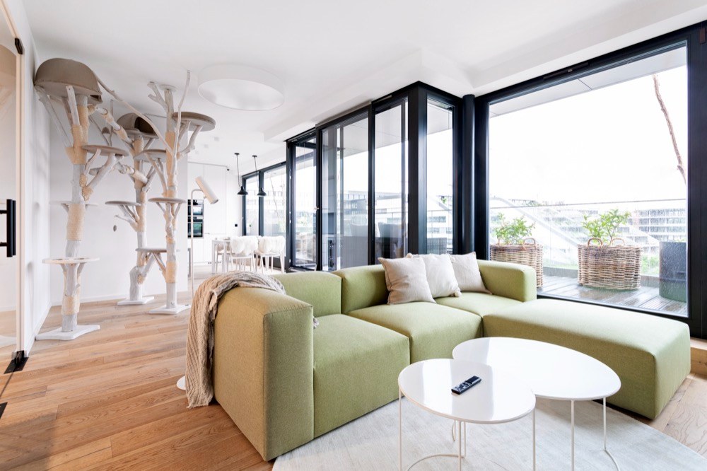 Majitele rodinného domku na okraji Prahy už starost o dům omrzela. Toužili být více součástí ruchu velkoměsta, proto se spolu se svými třemi kočkami přestěhovali do nového bytu s velkou terasou. Rozkošné atraktivní zázemí pro všechny členy domácnosti připravila designérka Markéta Fleischnerová se svým týmem studia MF art.