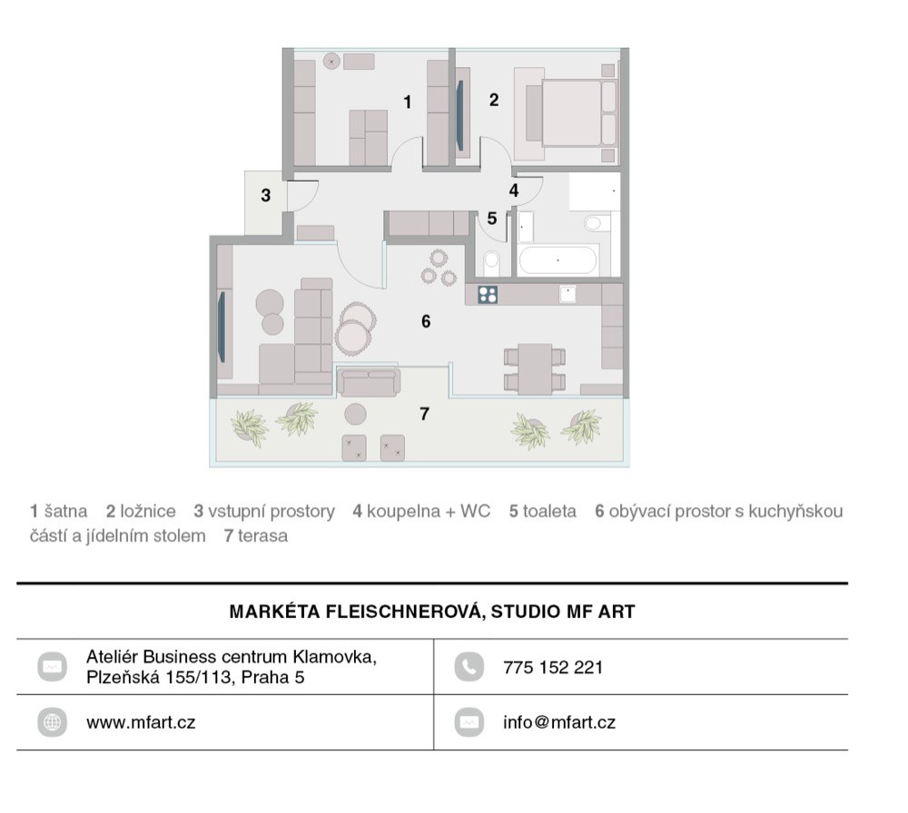 „Práce na tomto bytě byla velmi příjemná. Okusila jsem mírně odlišný vkus, než jsem zvyklá. Pracovala jsem s dodavateli nábytku, které dobře znám, takže jsem nepředpokládala žádný velký kolaps, který také nepřišel,“ říká interiérová designérka, koučka, floristka a lektorka kurzů interiérového designu Markéta Fleischnerová ze studia MF art. Vždy si přeje, abyste se domů těšili. Jejím úkolem je, aby se klienti cítili v interiéru bezpečně, sami sebou, aby v něm mohli tvořit, růst a zažívat chvíle plné lásky. Navrhuje svým klientům harmonické interiéry, které léčí. Umí uzdravovat a dělat lidský život šťastnějším. Věří, že to, co člověka obklopuje, velmi ovlivňuje jeho cítění, chování a také to, jaká činí rozhodnutí. Navrhuje interiéry tak, aby sytily všechny smysly.