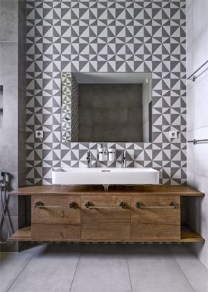 Aktuální stav rozestavěného domu umožnil novým majitelům zařídit koupelny tak, jak si přáli. O návrh na řešení požádali architekta Jindřicha Kobra ze společnosti Perfecto Design, která zajistila i realizaci. Hlavní požadavek nadčasovosti platil i pro dětskou koupelnu.