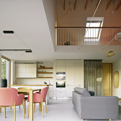 Foto: Alex Shoots Buildings Lákavá nabídka získala brzy jasnější kontury v podobě několika návrhů odpovídajících zadané dispozici se třemi ložnicemi, dvěma koupelnami, velkým obývacím pokojem s převýšeným prostorem a otevřeným schodištěm. Po několika schůzkách a prohlídkách domu ve virtuální realitě následoval výběr finální verze.