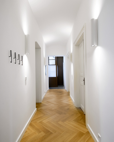 Byt v jednom ze staroměstských domů vznikl spojením několika menších, se společným zázemím, s chodbou a malou pavlačí. Cílem týmu architektů v čele s Ondřejem Dvořákem a Jiřím Matysem bylo vdechnout prostoru nový život a soukromému investorovi zde vytvořit zázemí pro jeho rodinu. Adaptace prostoru na jeden velký byt architektům umožnila spojit komfortní užívání s obnovením původního charakteru interiéru s dechberoucími výhledy na moře červených střech v samém srdci Prahy v blízkosti Staroměstského náměstí.