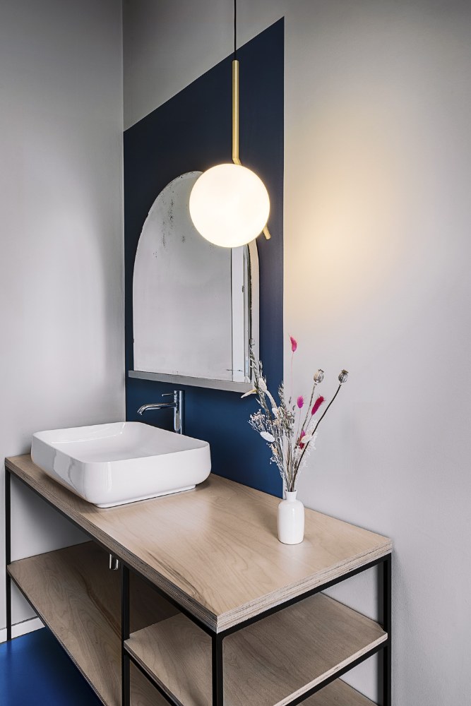 Kromě výrazné barevnosti je pro tuto realizaci zásadní také práce s umělým osvětlením, které zde „čaruje“ dokonce i když je zhasnuto – například v podobě nástěnných disků poslušně následujících přímou linii výmalby nebo naopak ve formě odvážných solitérů jemně narušujících veškerou pravidelnost.