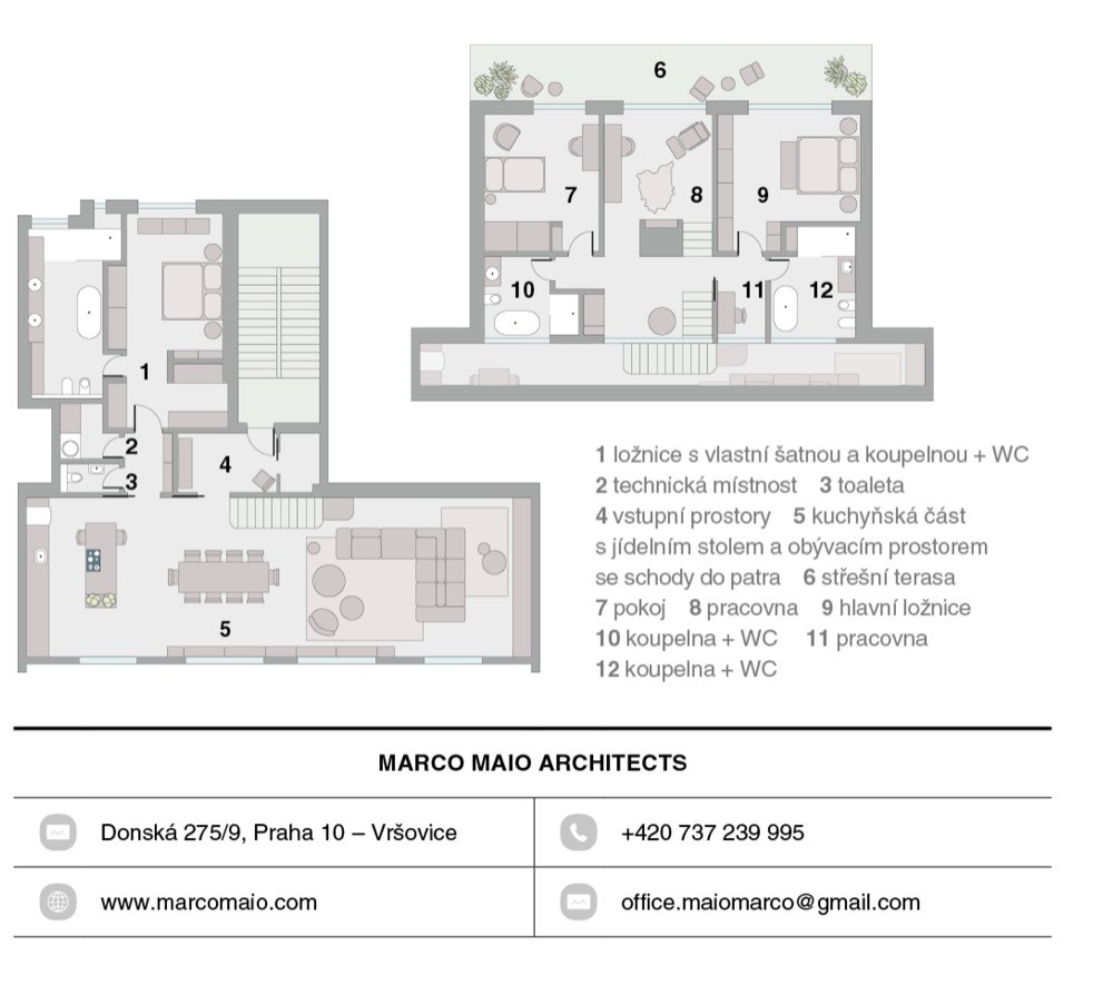 Portugalský architekt Marco Maio žije a působí již téměř 15 let v Praze, kde se věnuje přednášení na katedře architektury na Fakultě stavební ČVUT, a především svému architektonickému studiu Marco Maio Architects. To je týmem mladých profesionálů z celého světa, sídlícím v hlavním městě České republiky. Rozdílného původu a kulturního prostředí využívá studio pro tvorbu nových a neotřelých návrhů. Z drtivé většiny pracují s konceptem shaping the light, kdy se pomocí přirozeného světla snaží dosáhnout co nejpřirozenějšího a nejkomfortnějšího prostředí.