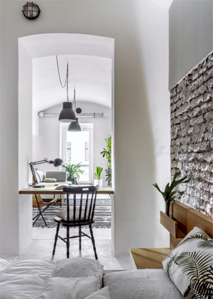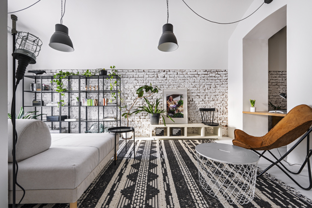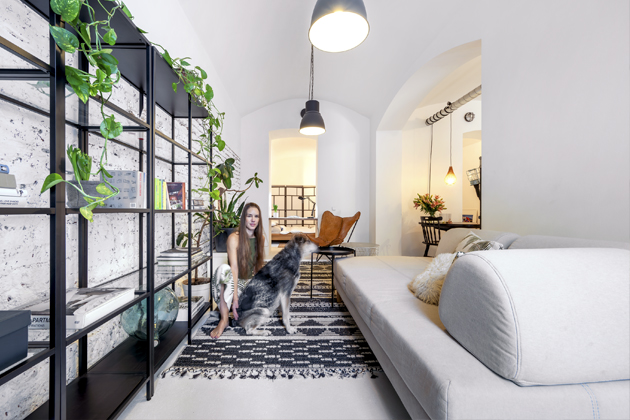 Pod rukama Andrey Polach ožívají nejen sklepní prostory, jako je tento, ale například i zahradnictví, z kterého nedávno vytvořila rodinný dům. Má ráda variabilní vybavení, s nímž je možné daný prostor pozměnit, a nikde nesmějí chybět rostliny. Architektka se tak zanedbaným nemovitostem snaží vtisknout nejen nový vzhled, ale obohatit je třeba i o další přidanou hodnotu. Tato nemovitost se z umouněných tmavých kanceláří, tedy nebytového prostoru, stala atraktivním místem k bydlení.