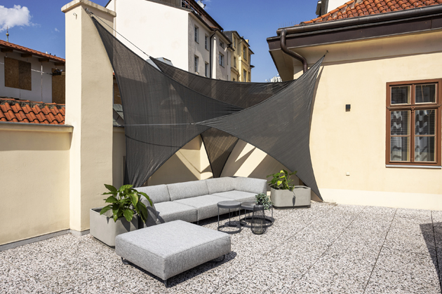 Mezonetový bytový prostor se nachází ve třetím patře historického domu, který podle prvních zmínek na místě stojí už od roku 1400. Právě díky historickému charakteru stavby samotné i okolní městské zástavby byly veškeré úpravy a s nimi spojené logistické operace na místě o poznání složitější. „Určité omezení pro nás představoval už jenom přístup do domu a problém byla také (ne)možnost parkování v okolí. Jediná trasa do bytu pak vedla po dobře zachovalém historickém schodišti.